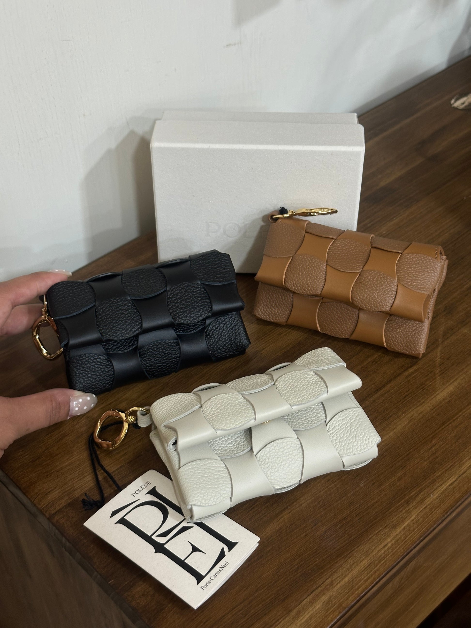 POLENE Neiti Cardholder 柔軟牛皮編織格 [最新卡套上架! 高級感滿分 配有匙扣可掛袋!]
